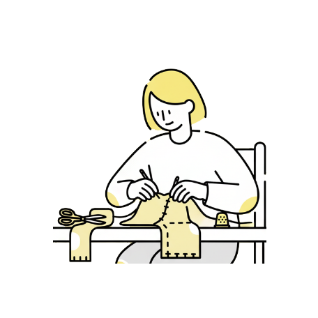 後工程スタッフ:仕上げ・アイロン・パーツ取り付けなどの最終工程を担当