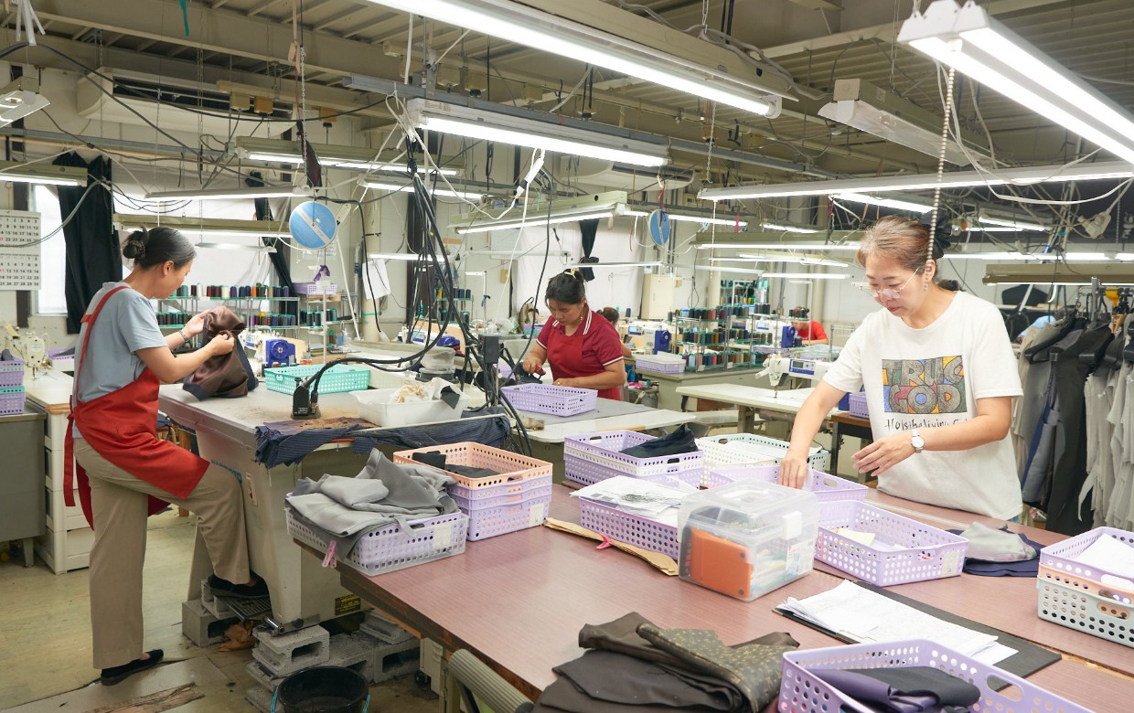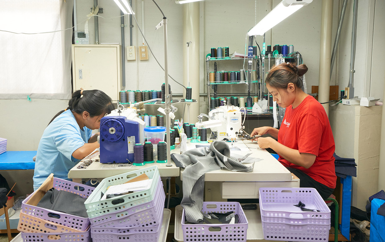 ベスト工房は、事業名称イメージから小規模な印象を持たれがちですが、100着以上の大ロットにもお応えできる規模の生産体制が整っている工場です。